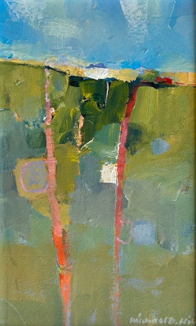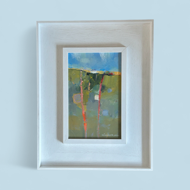 An original acrylic painting on board, by Michael Hill. Presented in a white wood tray frame.