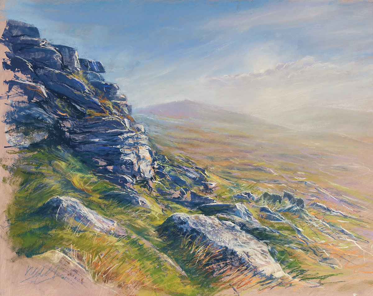 Original pastel painting of Dartmoor, at Belstone Tor, by Rebecca De Mendonca.