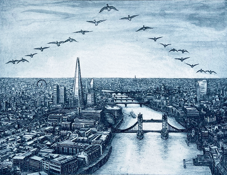 Original copperplate print of London by Kevin Wright SWAc (South West Academy)