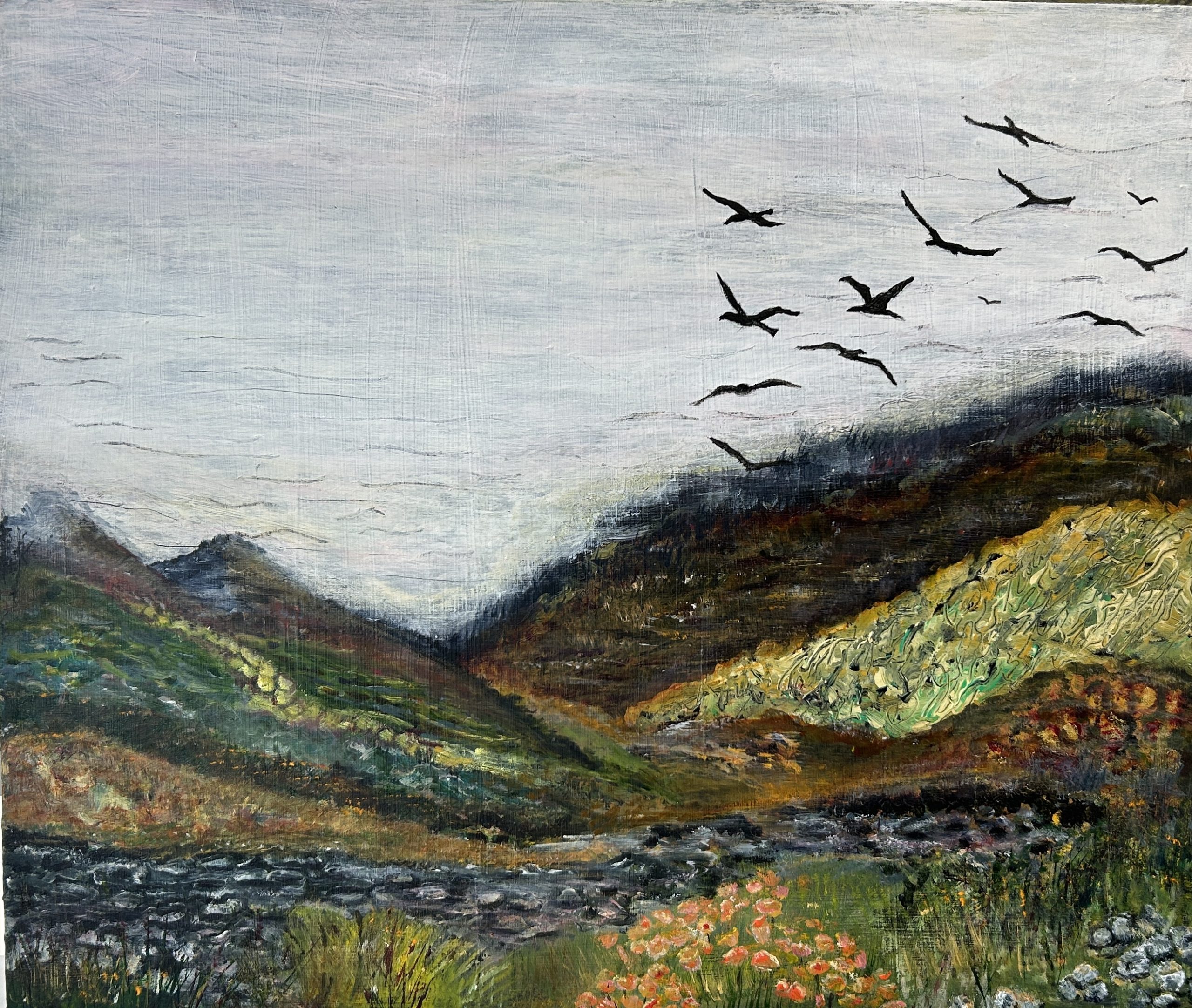 The work is in a variety of different mediums: watercolour, pastels, charcoal, oils, acrylics and as you can see the subjects vary widely depending on what each person wished to focus on. You’ll also see a many different techniques and styles,that’s because I encourage finding your own distinct style and experimenting.
